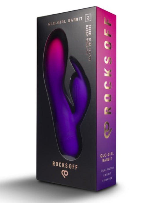 Rocks-Off Glo Girl is a dual motored bunny vibrator designed with flexibility in mind to fit with the contours of your clitoris and G-spot. With velvet touch silicone and 100% waterproof each of the 2 motors 10 impressive vibrations will leave you wanting more.